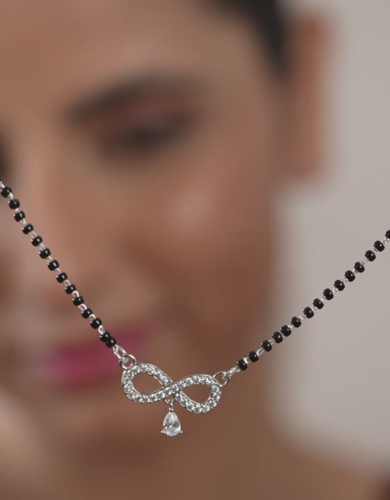 Elegant Black Beads Mangalsutra with Sparkling Infinity Pendant