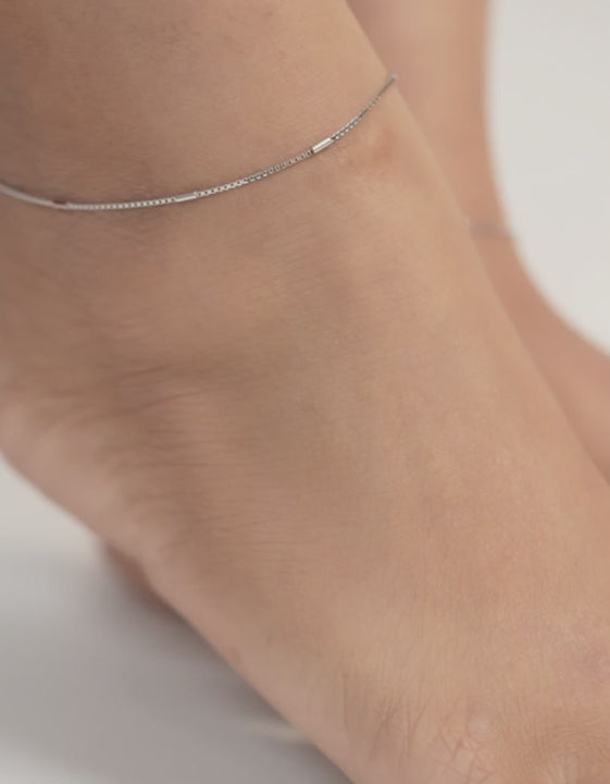Elegant Box Chain Anklet with Tube Detailing – Silver Tone