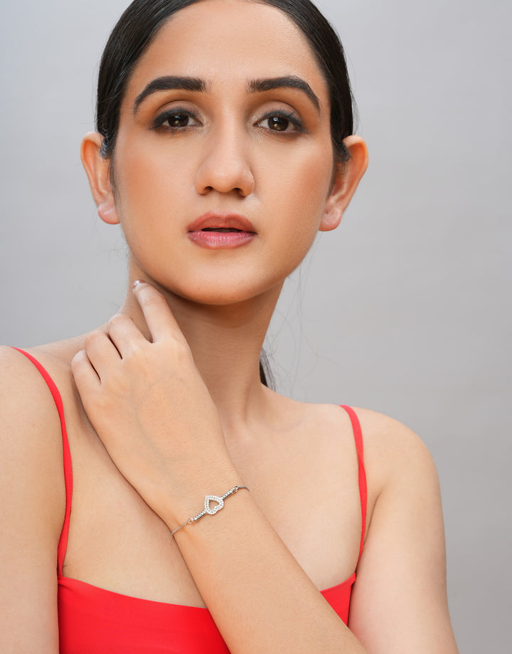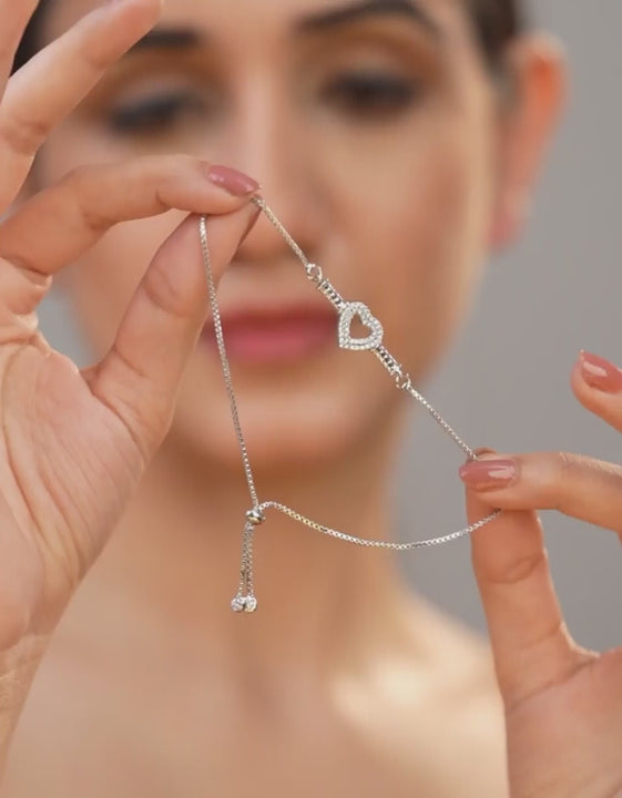 Crafted from 925 sterling silver, this Elegant Heart Shape Adjustable Chain Bracelet features a delicate heart-shaped design adorned with sparkling white Cubic Zirconia (CZ) in a round cut. Its adjustable chain ensures the perfect fit, adding a subtle touch of elegance and charm to any outfit. Finished with rhodium plating for lasting shine, this timeless and versatile bracelet is perfect for everyday wear or as a thoughtful gift.