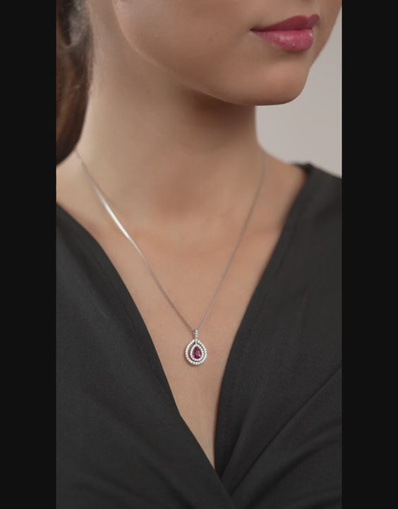 Elegant teardrop ruby pendant with sparkling CZ accents