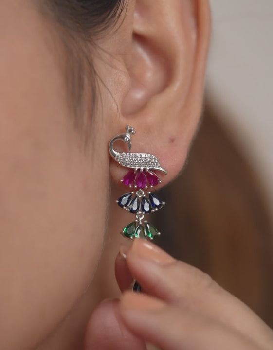Peacock Rhodium Plated Cubic Zirconia 925 Sterling Silver Drop Earrings