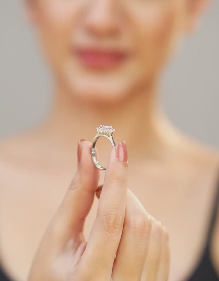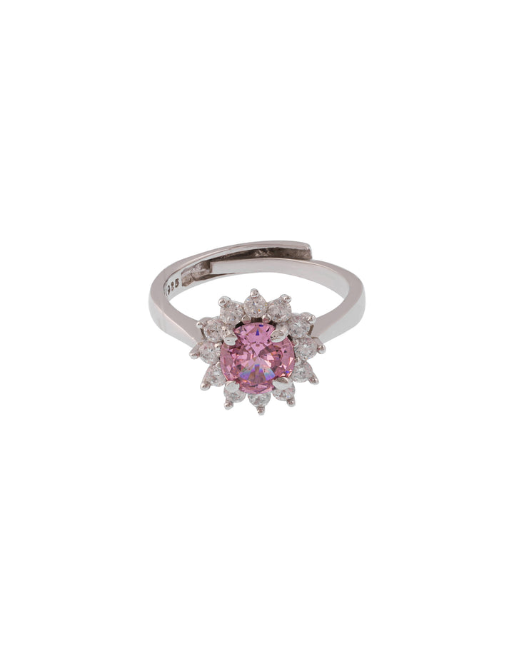 Crafted from 925 sterling silver, this ring features a vibrant pink and white Cubic Zirconia (CZ) in a round cut, making a bold yet elegant statement. Finished with rhodium plating for lasting shine, it adds a pop of color and sparkle to any outfit, perfect for parties, special occasions, or dressing up your everyday look. Chic, stylish, and eye-catching — let your fingers do the talking.