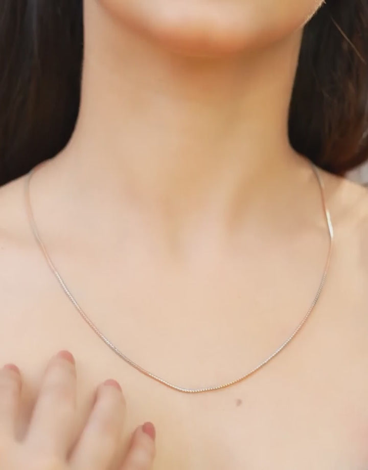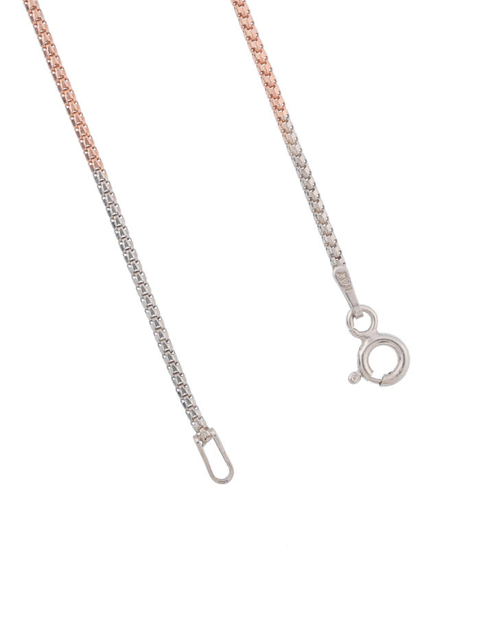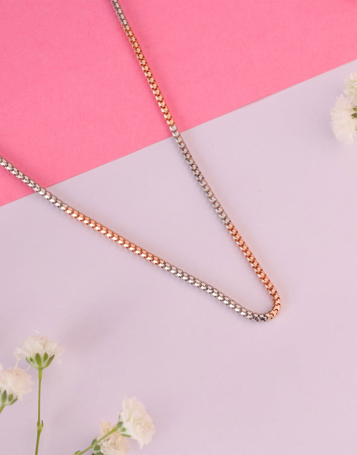 This Trendy Silver & Rose Gold Chain, crafted from 925 sterling silver with sleek rose gold plating, effortlessly blends modern style with timeless elegance. Its versatile design makes it perfect for layering with other chains or wearing solo for a subtle statement. Chic, stylish, and everyday-ready — elevate any outfit with a touch of sophistication.